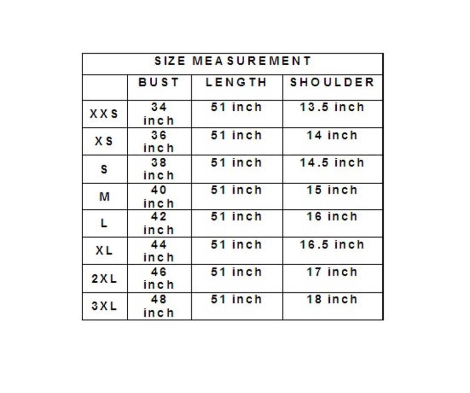Note:For more sizes & their measurement, please refer our below chart