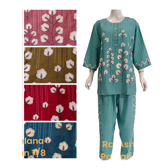 Women's Pajama Set Mother Interlock Floral Pattern Cotton Seasonal W40002260 100% Cotton for Girls Women's Wear