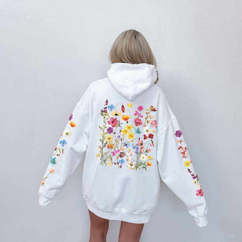 Women's Forest Green Oversized Graphic Fleece Hoodie Winter Front Aesthetic Floral Back Print Pullover Sweatshirt Eco-Friendly