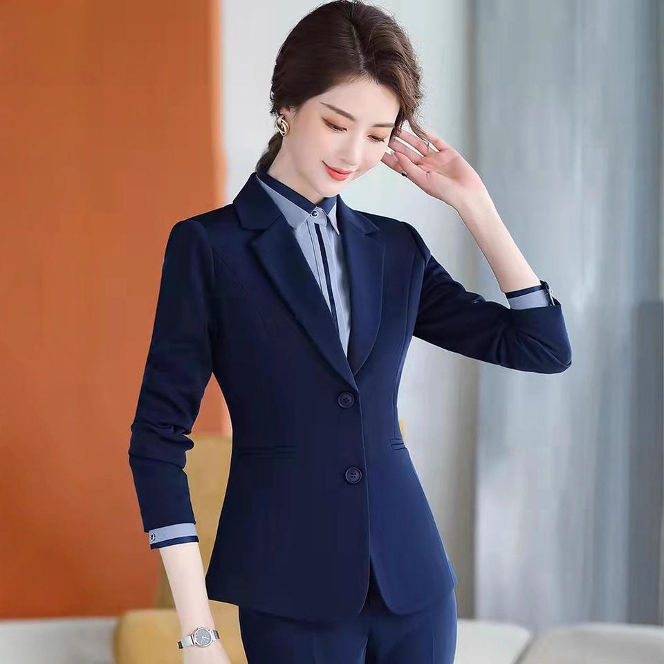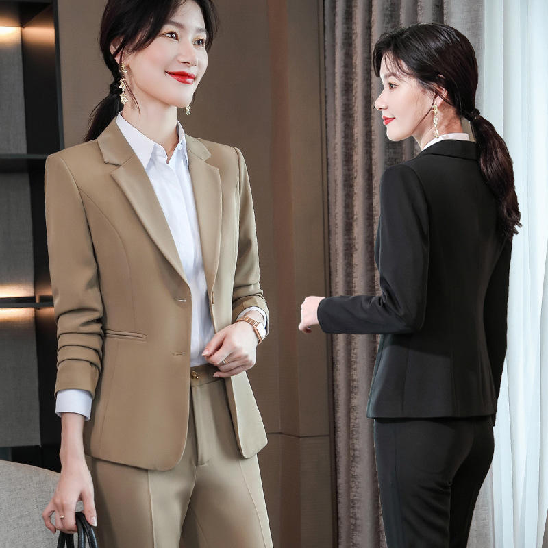 Women's Formal Suit Set Spring Autumn Slim Fit Korean Style Business Work Clothes Anti-Wrinkle Polyester Fiber Full Sleeve