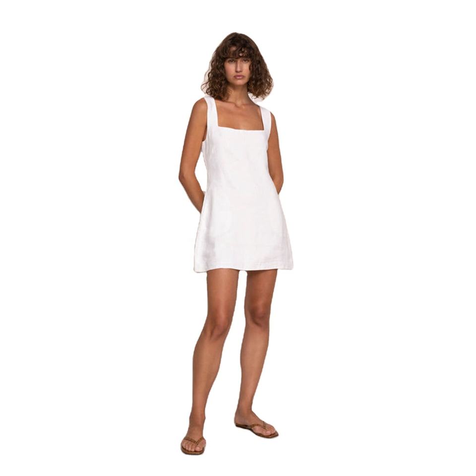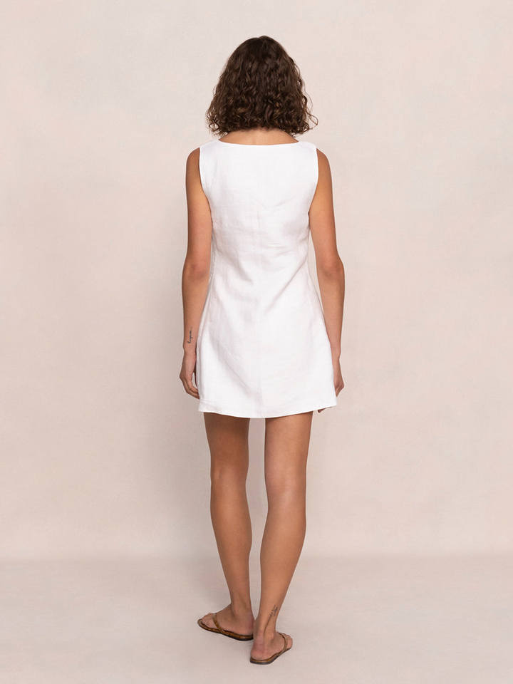 Women's French Vintage Hepburn-Style Natural Waist White Mini Dress Elegant Minimalist Sweet Comfortable Breathable 100% Linen
