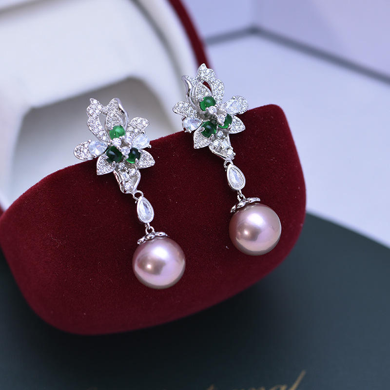 Women's Freshwater 11-12mm White Round Pearls Earrings S925 Silver Korean Version with Strong Light and Subtle Flaws