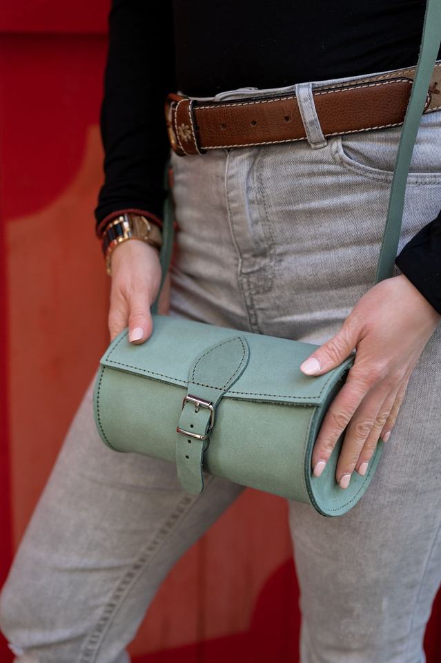 Women's Handmade Full Grain Leather Crossbody Purse Cylinder Bag Zipper Personalised Laser Engraving Gift for Mum LBB-0022