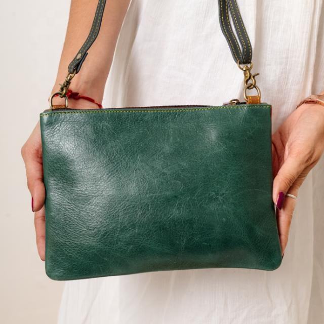 Women's Genuine Cowhide Leather Crossbody Bag Floral Tooled Design Single Strap Zipper Vintage Western Fashionable Summer Winter