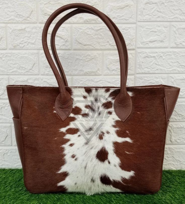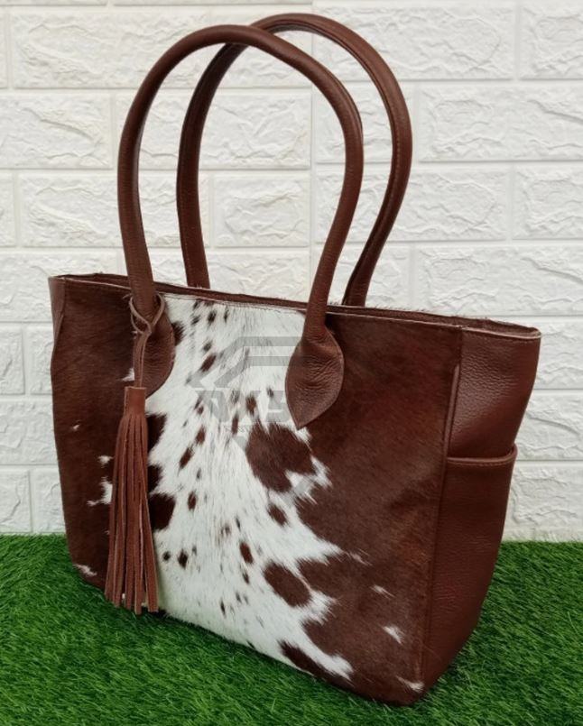 Women's Genuine Cowhide Leather Handbag Zipper Closure Custom Logo Black White Pattern Waterproof Canvas Cow hair leather bags