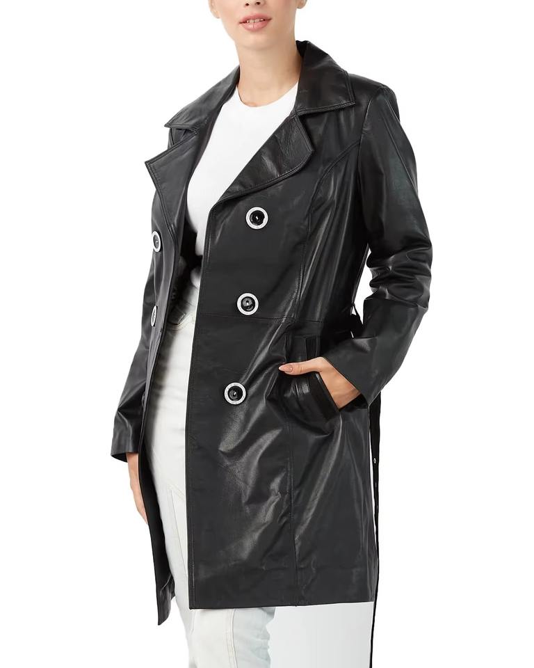 Product name:Women Leather Trench Coat