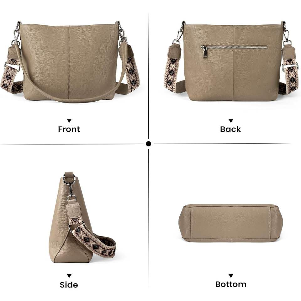 Women's Genuine Leather Hobo Bag Soft Crossbody Handbag with Adjustable Wide Strap Vintage Style Chain Decoration PU Lining