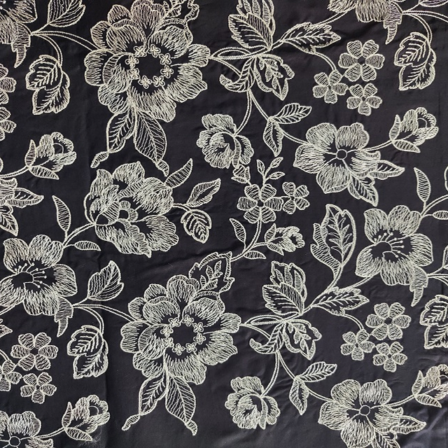 Women's & Girls' Super Soft Breathable Casual Wear Black Cotton Voile Fabric with Floral Embroidery Nonwoven Technics