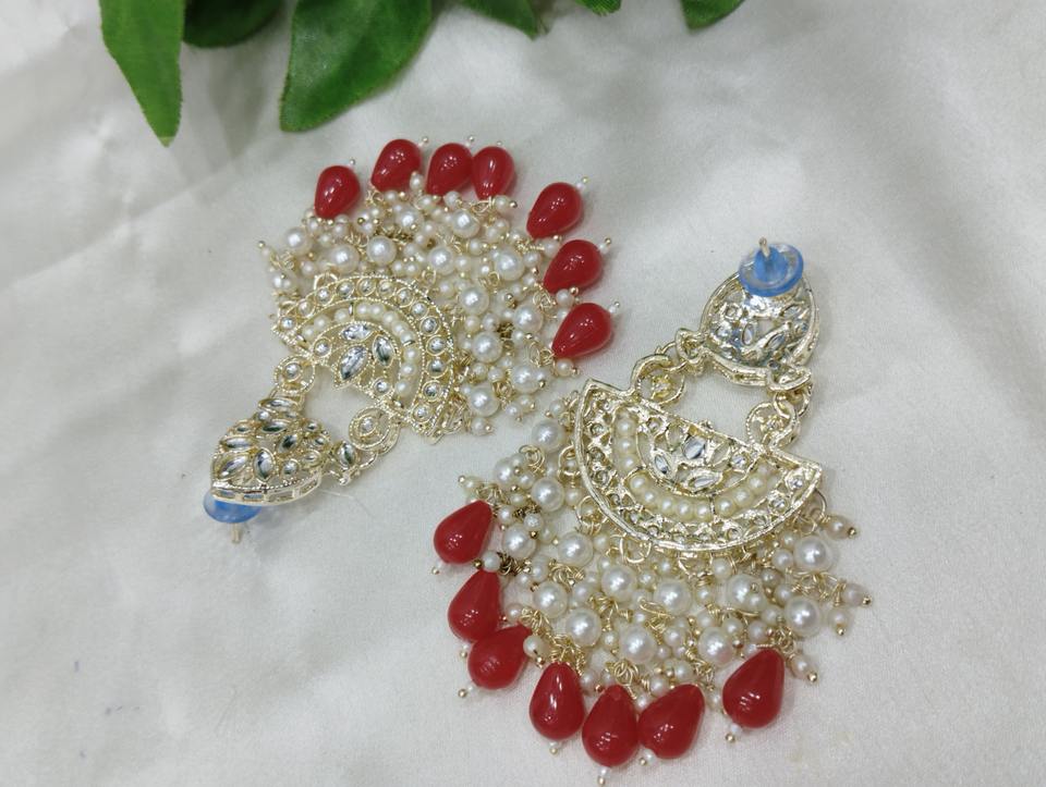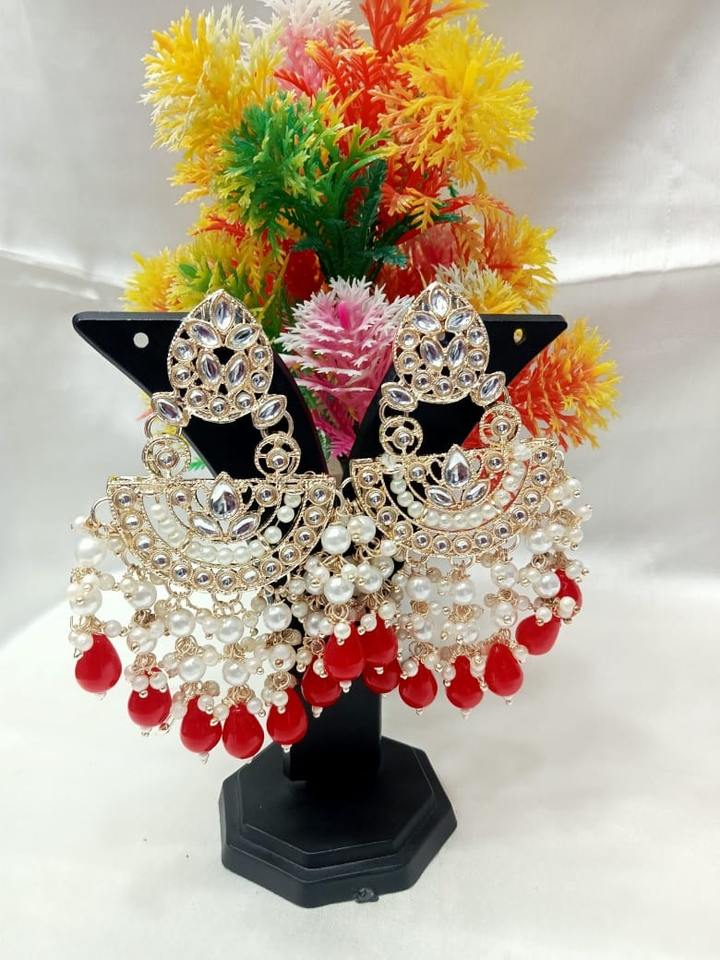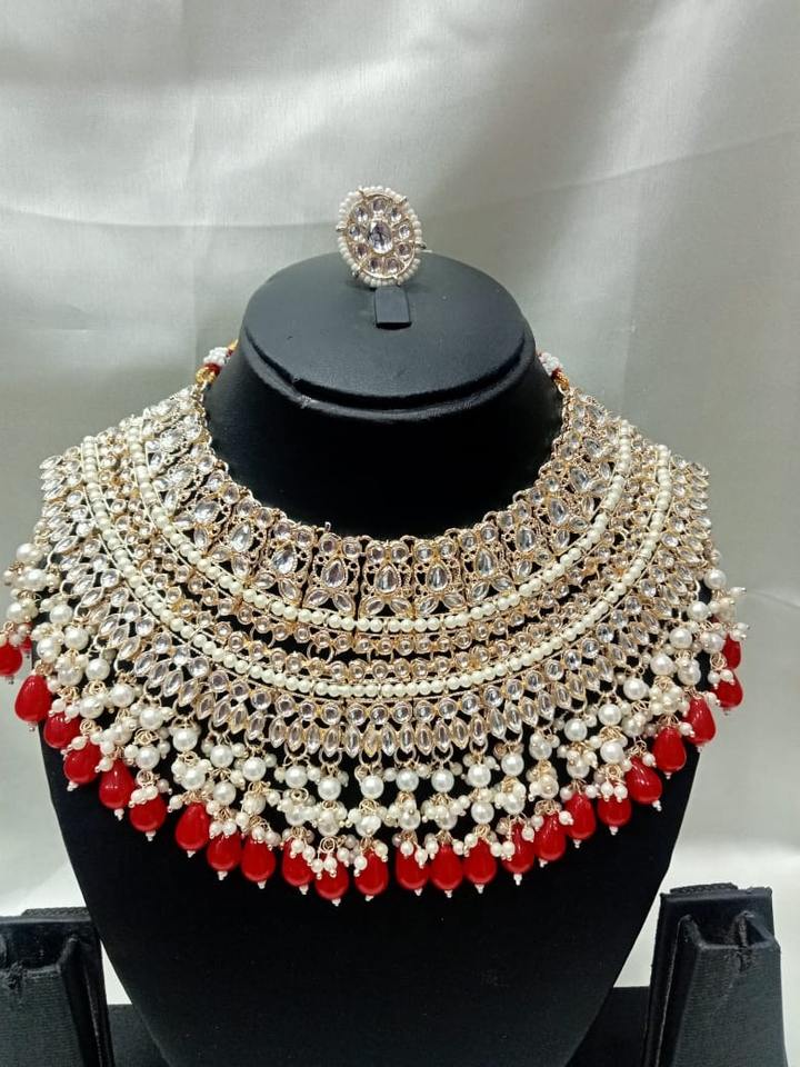 Products Name:Fancy Collection Gold Plated Kundan & Pearl Necklace Set