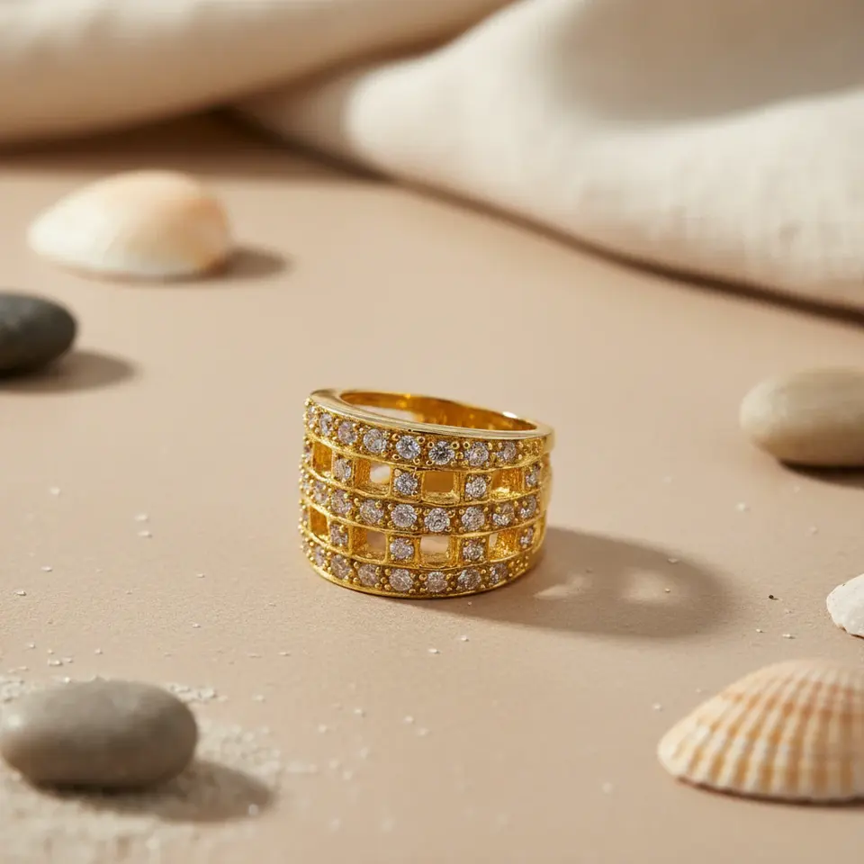 Women's Gold Plated Ring with Cubic Zirconia Stones Fashionable Inlay Cluster Ring for Daily Wear Rhodium Setting