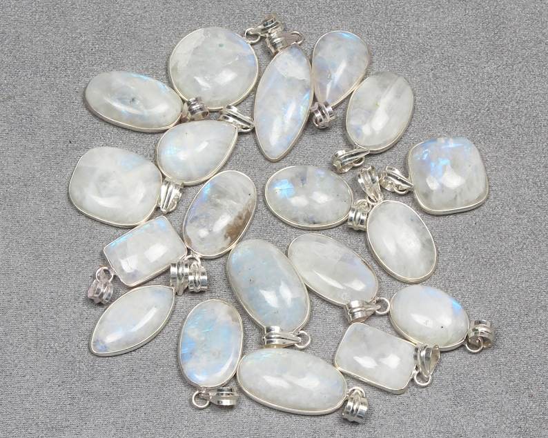 Women's Gold Plated Silver Overlay Bezel Unique Natural Rainbow Moonstone Crystal Pendant Necklace Fine Pendants & Charms