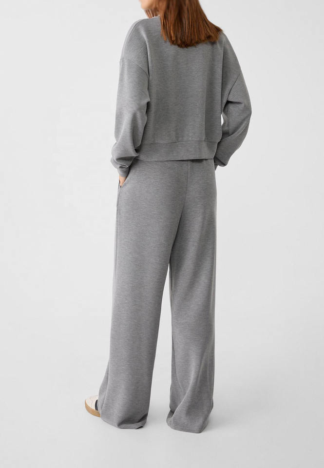 Women's Gray Lounge Tracksuit Set Casual Oversized Boxy Sweatshirt with Drawstring Pants