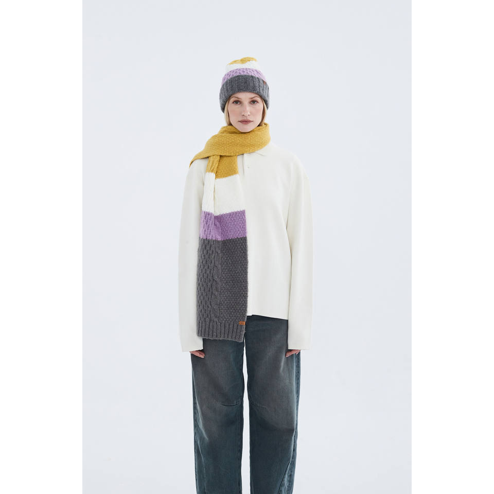 Women's Gray Striped Soft Winter Shawl Casual Acrylic Textured Knitwear Comfortable Wool & Blends Scarf-Clarissa