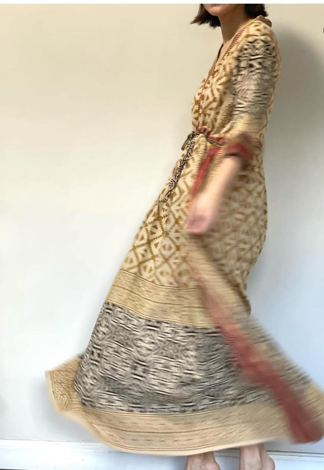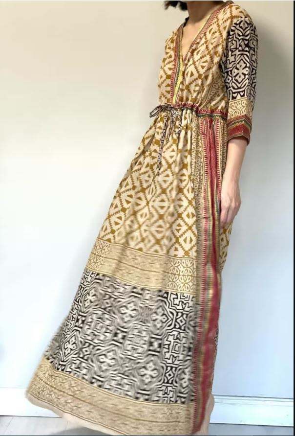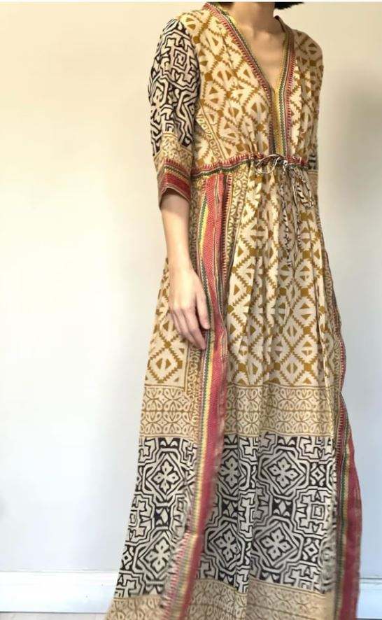 Product Name:Indian Cotton Long Kaftan Dress with Silk Zari Border