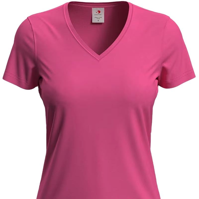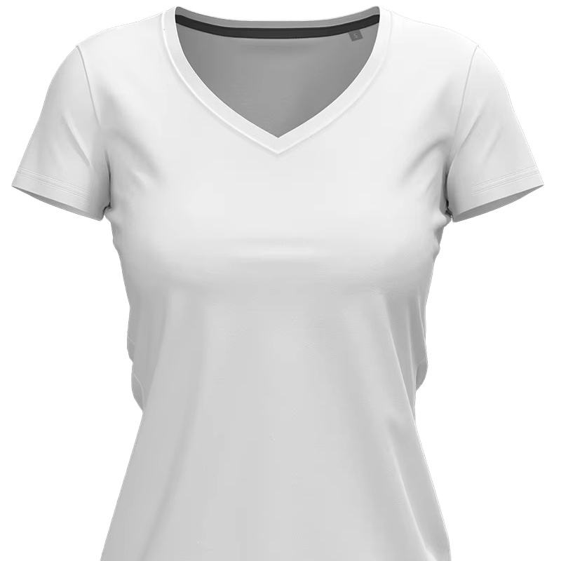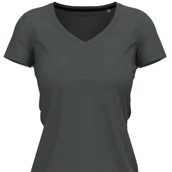 Women's Grey V-Neck 100% Cotton Knitted Jersey T-Shirt Casual Short Length with Anti-Pilling Logo Eco-Friendly Print Pattern