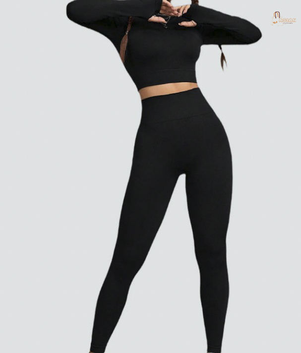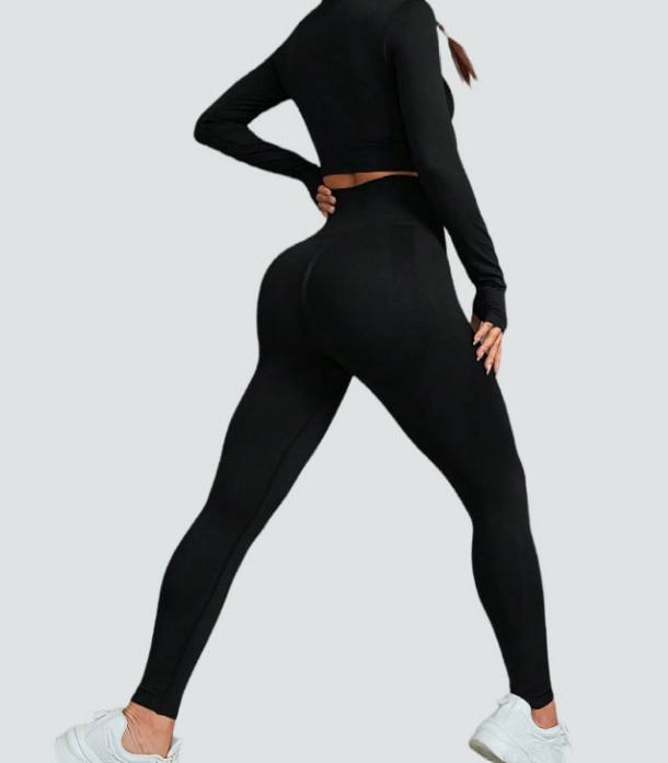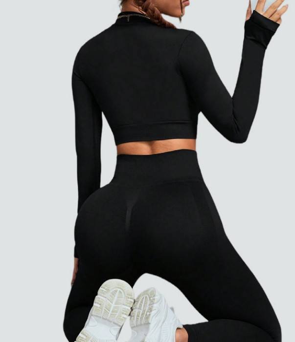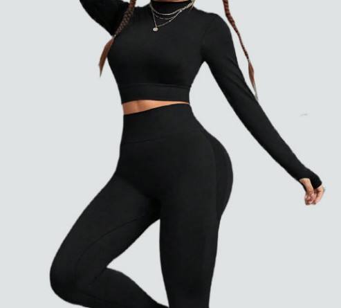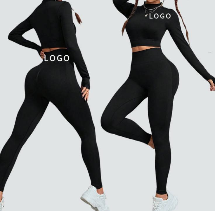Women's Gym Fitness Sports Sets with Custom Logo Slim Fit Long Sleeve Top Leggings Solid Pattern Two Piece Workout Wear Suits