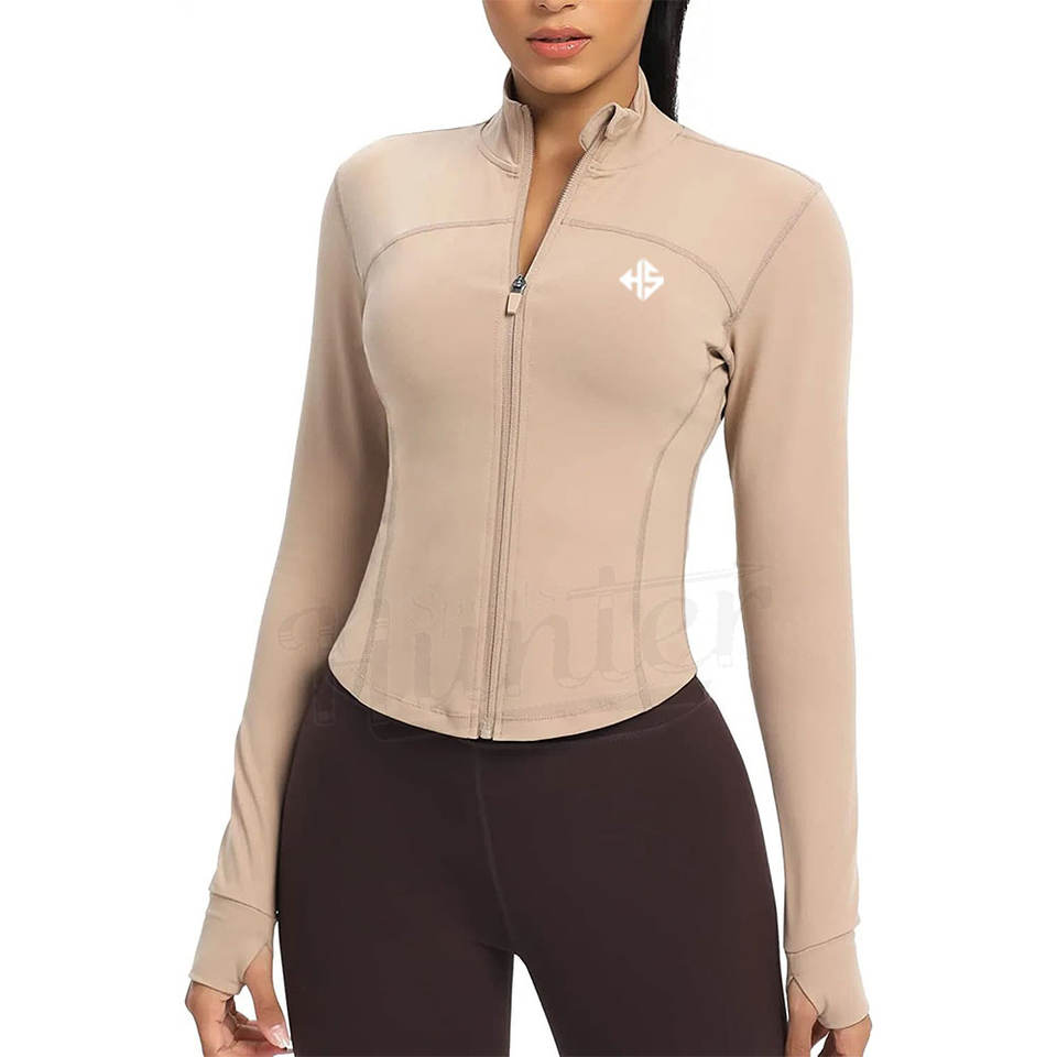 Women's Gym Fitness Zip-Up Training Track Sport Jackets Cropped Workout Yoga Sets Gym Workout Hooded Top