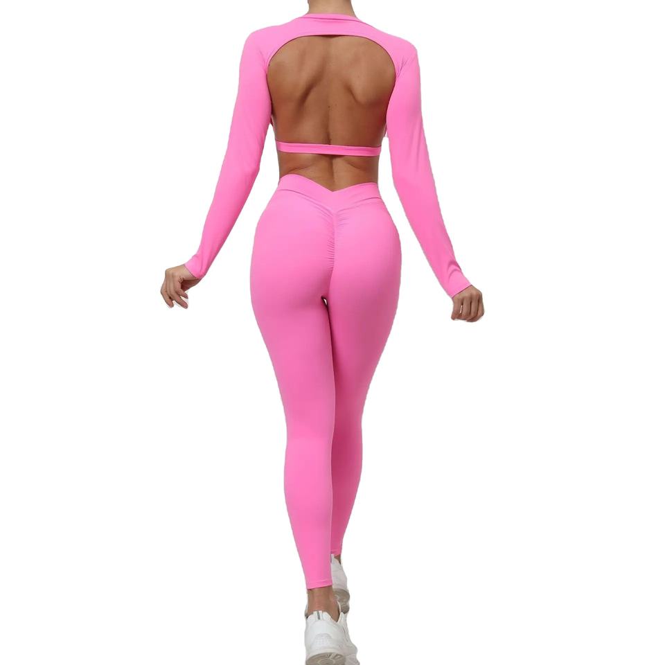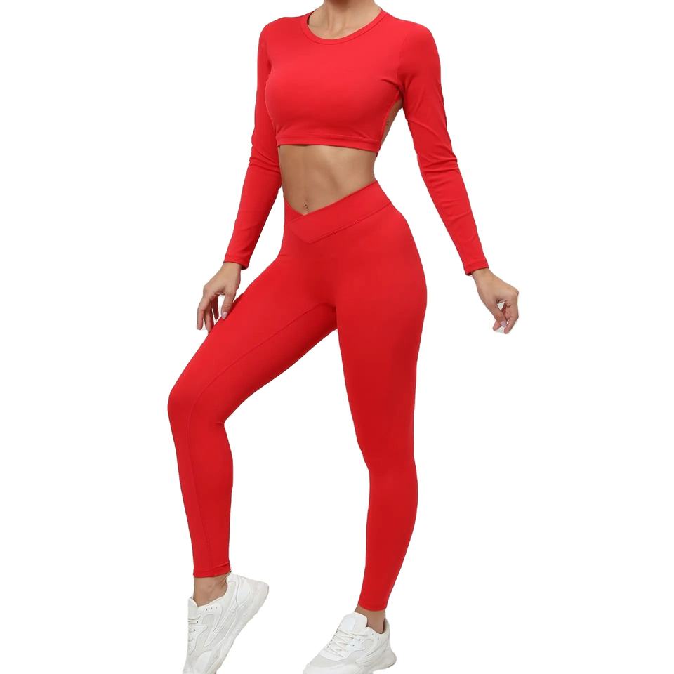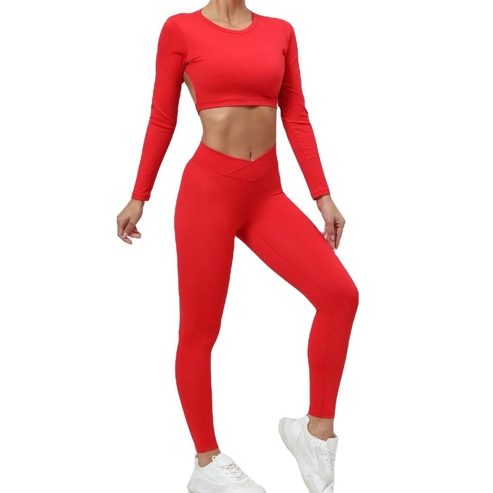 Women's Gym Set Long Sleeve Sports Shirt & High Waist Leggings Breathable Workout Yoga Suit for Running & Yoga Solid Bra Shorts