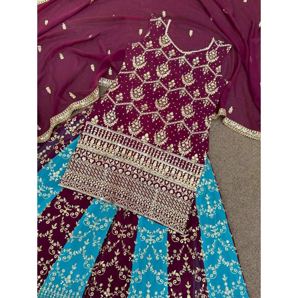 Women's HK Brand Purple Size m Beautiful Top Plazzo Dupatta Set with Embroidery and Sequins Work