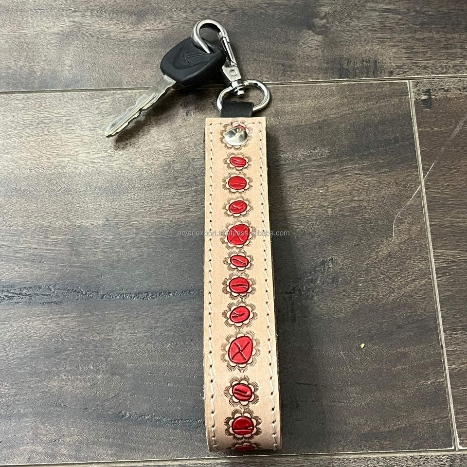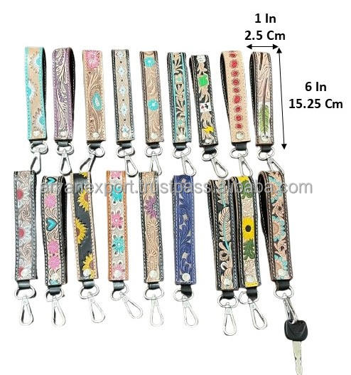 Women's Hand Tooled Cow Leather Keychain Wristlet Strap Custom Designer Pattern Key Fob Accessory Key Holder Luxury Lanyard Gift