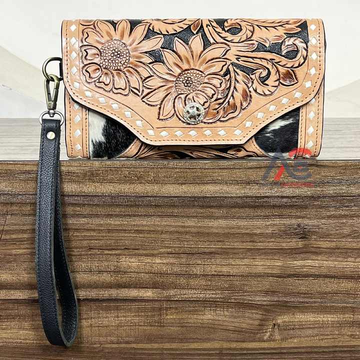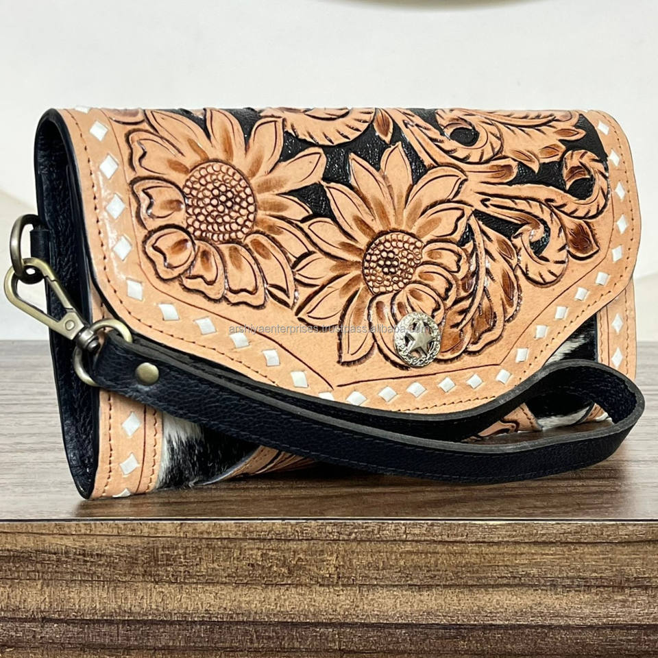 Product name:Western Hand Tooled Leather Wristlet Wallet