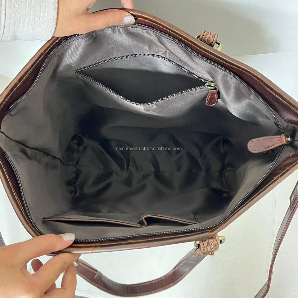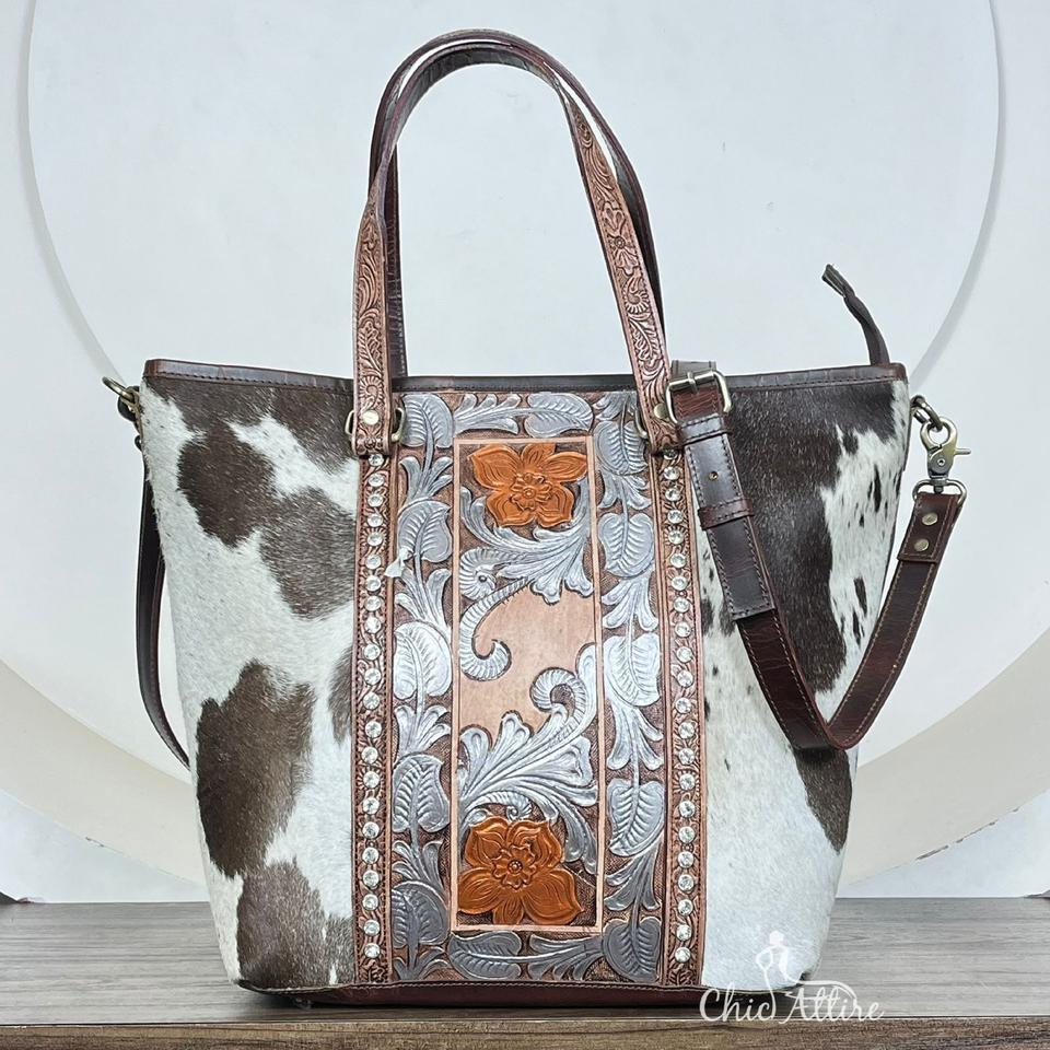 Product name:Hand Tooled Cowhide Leather Crossbody Tote Bag