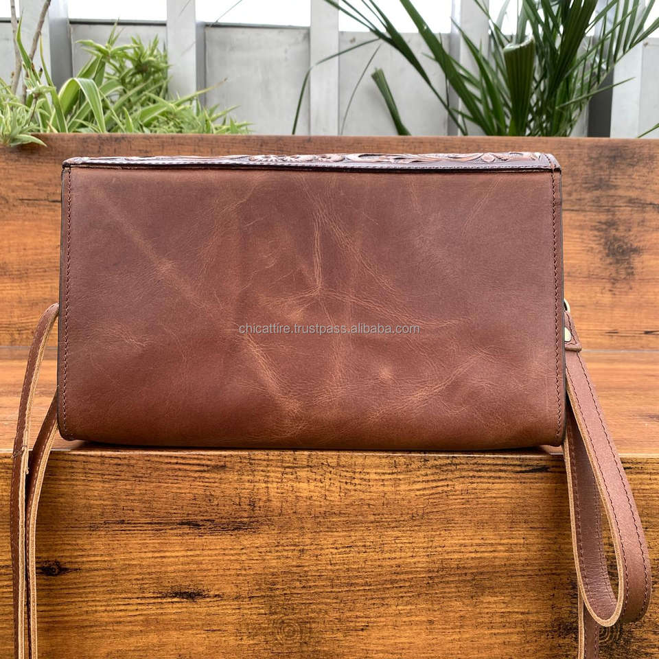 Women's Hand Tooled Leather Shoulder Bags Real Genuine Cowhide Leather Purses and Handbags Luxury 2025 Fashion for Ladies