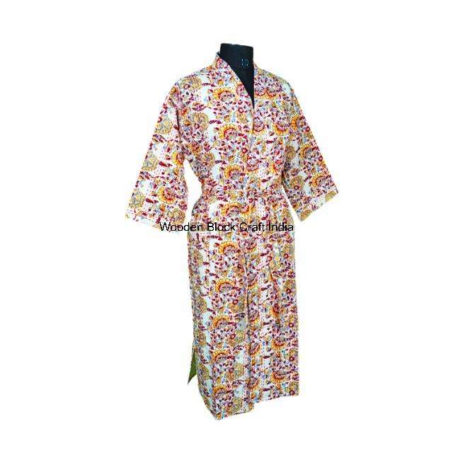 Women's Hand-printed Floral Pattern Quilted Jacket 100% Organic Cotton Three Quarter Sleeve Reversible Eco-Friendly Breathable