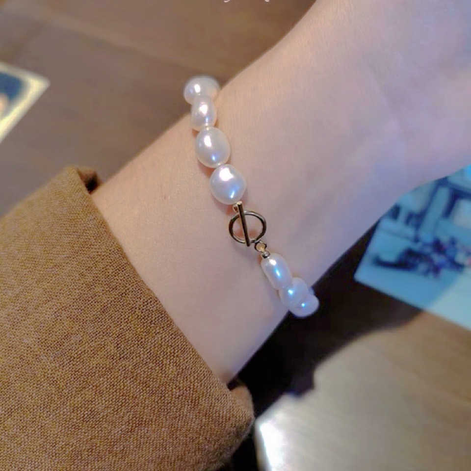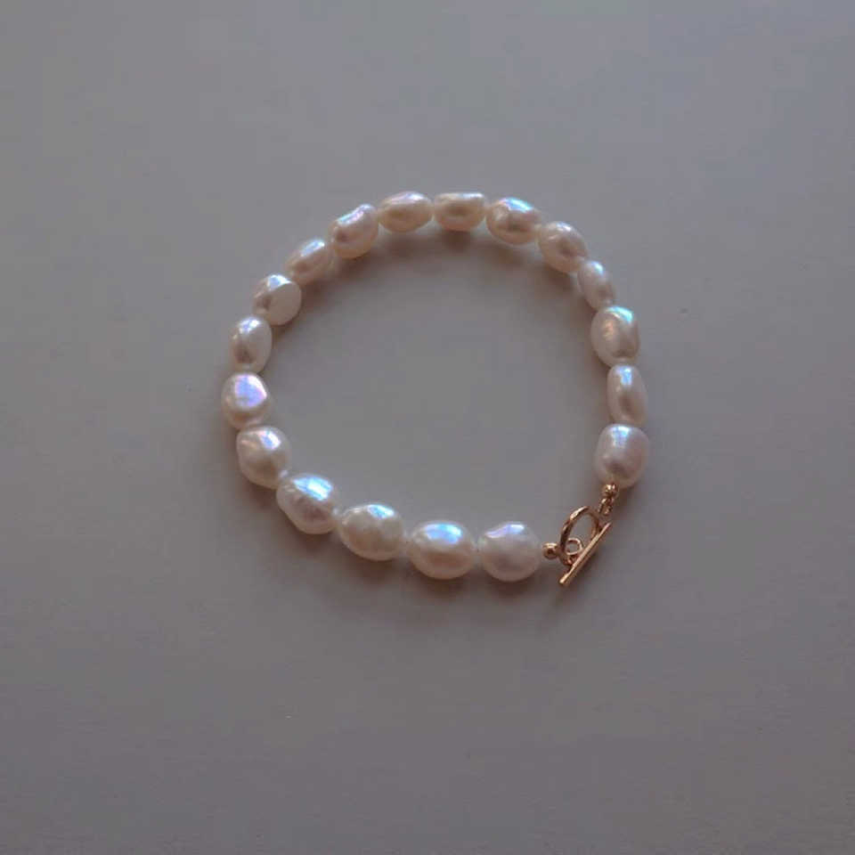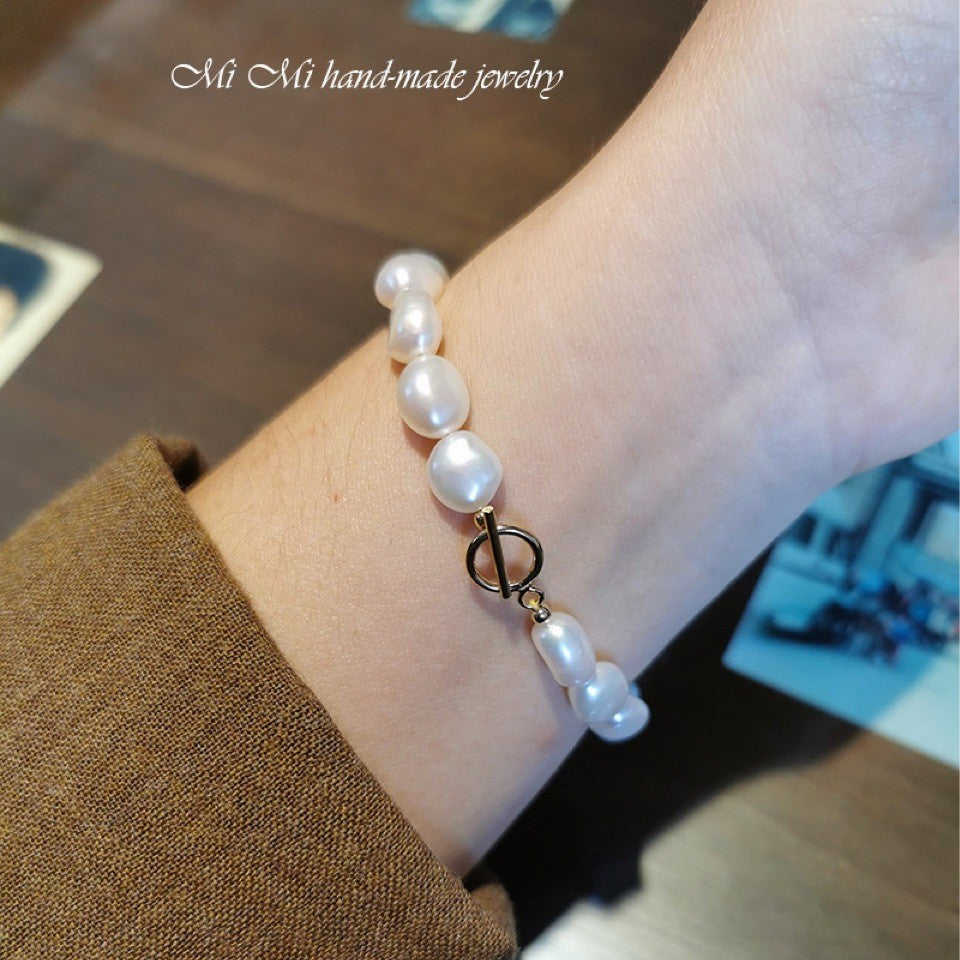 WENCHI Women's Handmade 925 Silver Plated 18K Gold OT Buckle Natural Baroque Pearl 17cm Elegant Bracelet