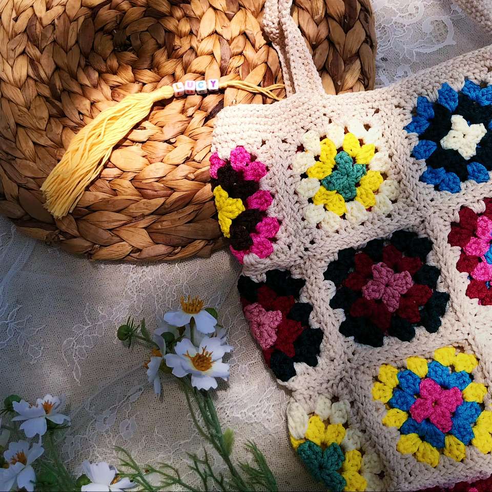 Women's Handmade Crochet Canvas Mesh Tote Bag Square Open Closure Beach Hobo Bag Casual Shoulder No MOQ for Gifts