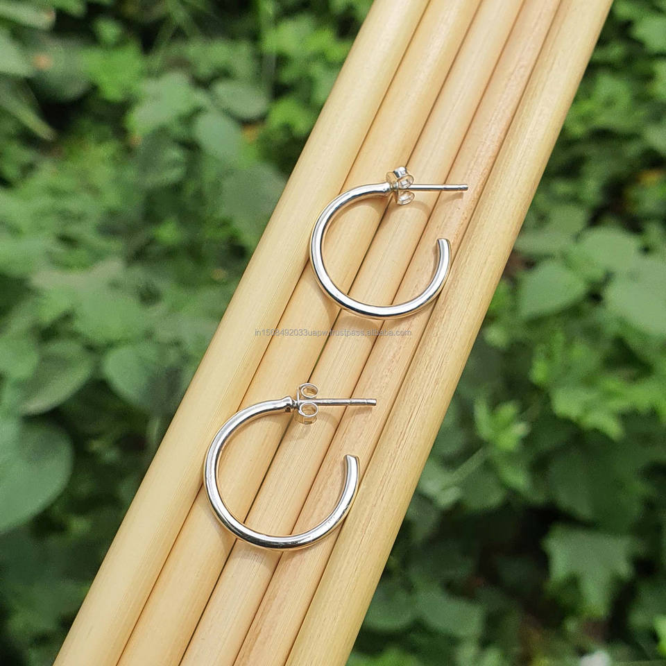 925 Sterling Silver Semi Circle Hoop Stud Earrings