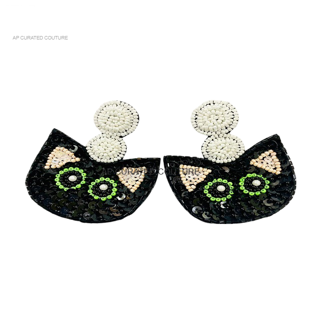 Women's Handmade Halloween Earrings-Sequin Seed Bead Skull Ghost Bat Pumpkin for Wholesale Fashion Accessory