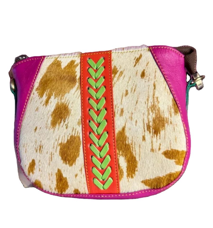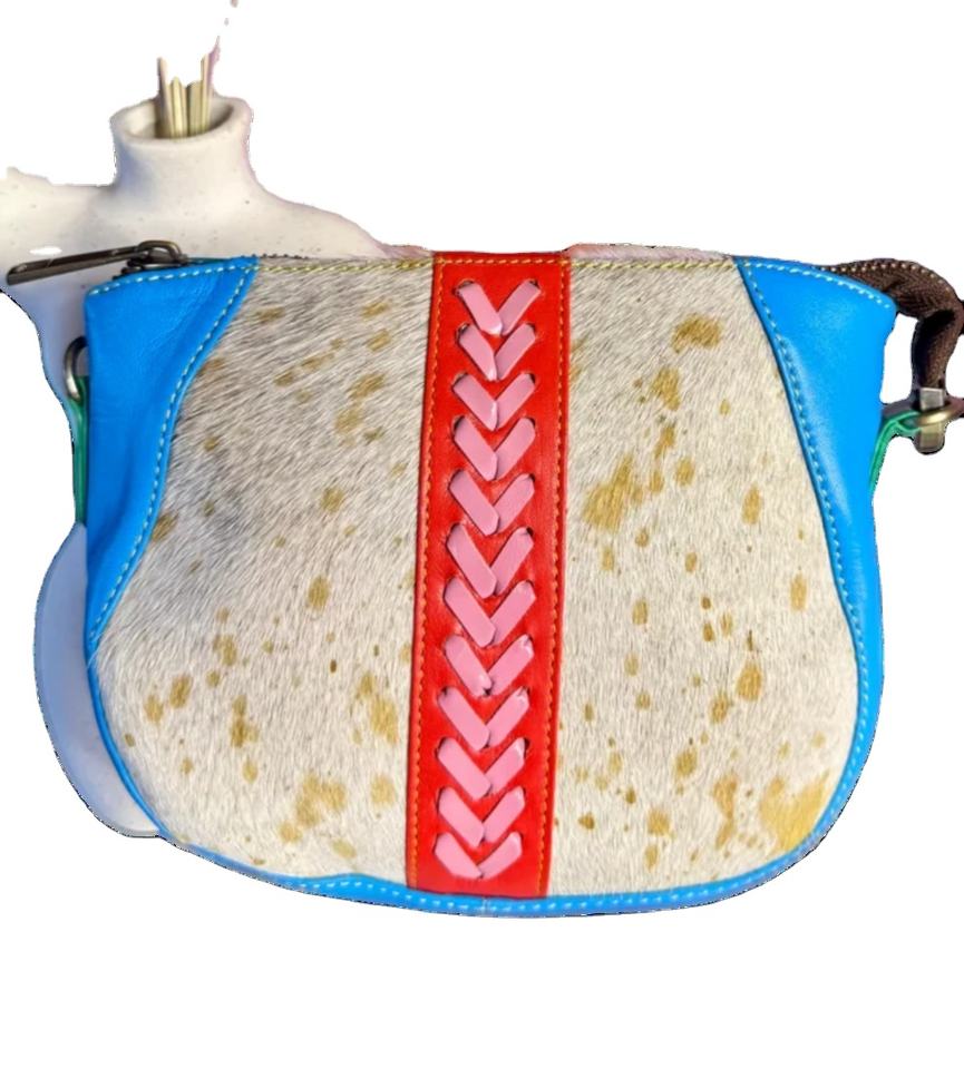 Women's Handmade Recycled Cowhide Leather Bohemian Bag with Zipper Printed Made in India for Summer Travel