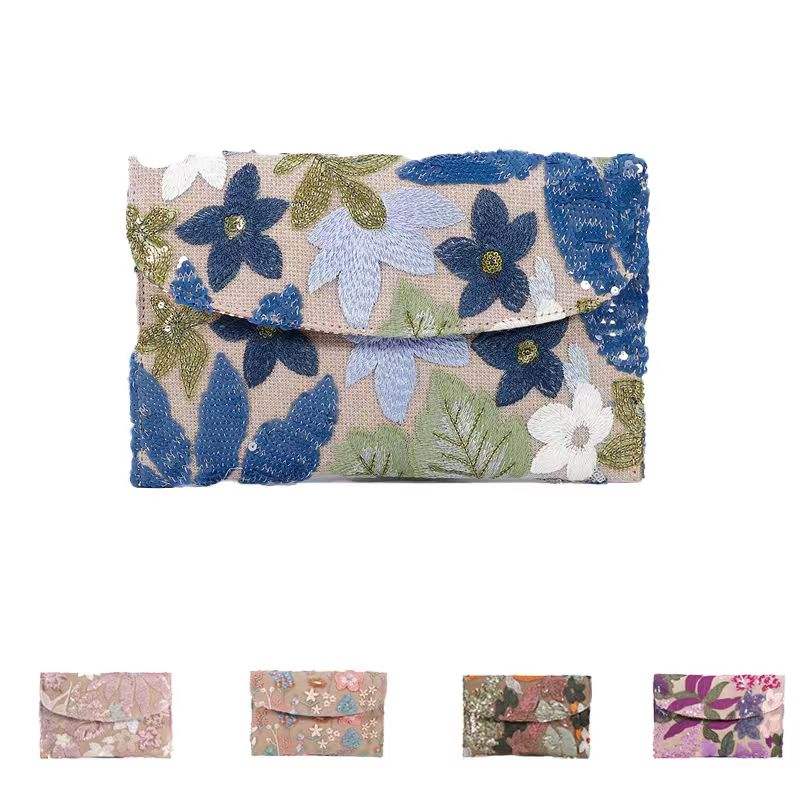 Women's Handmade Woven Straw Shoulder Clutch Bag Summer 2025 Shining Glitter Sequined Floral Embroidered Open Beach
