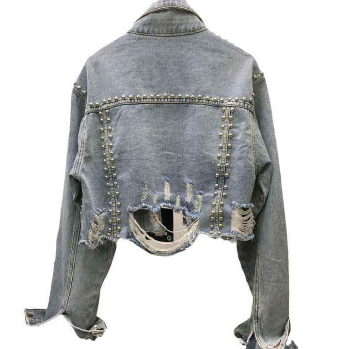 Women's Heavy Industry Rivet Studded Denim Jacket 2024 Spring Summer Collection Worn Nail Bead Jean Jacket Top for Winter