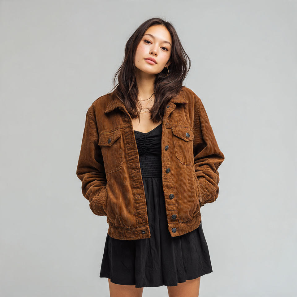 Women's Heavyweight Vintage Trucker Jacket Winter Corduroy Coat Streetwear Trucker Top Ladies Winter Corduroy Jacket Womens