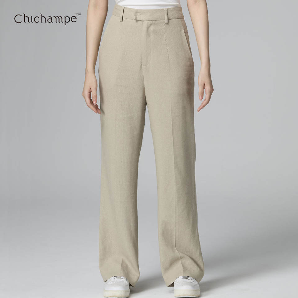 Women's Hemp Blended Straight Wide-Leg Suit Pants Trousers Comfortable and Stylish