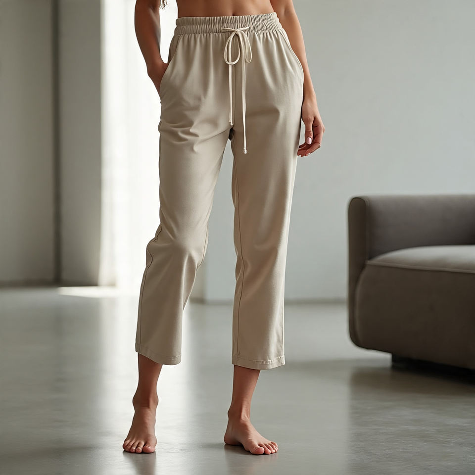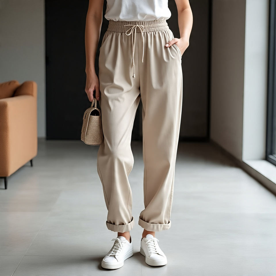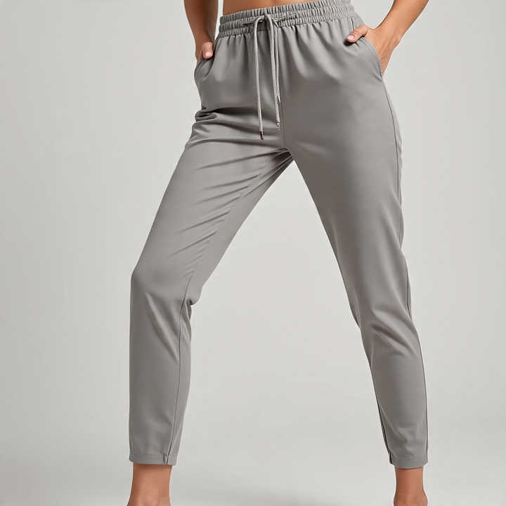 Women's High Drawstring Waist Sportswear Summer Jogging Trouser 100% Polyester Flat Front Style for Winter