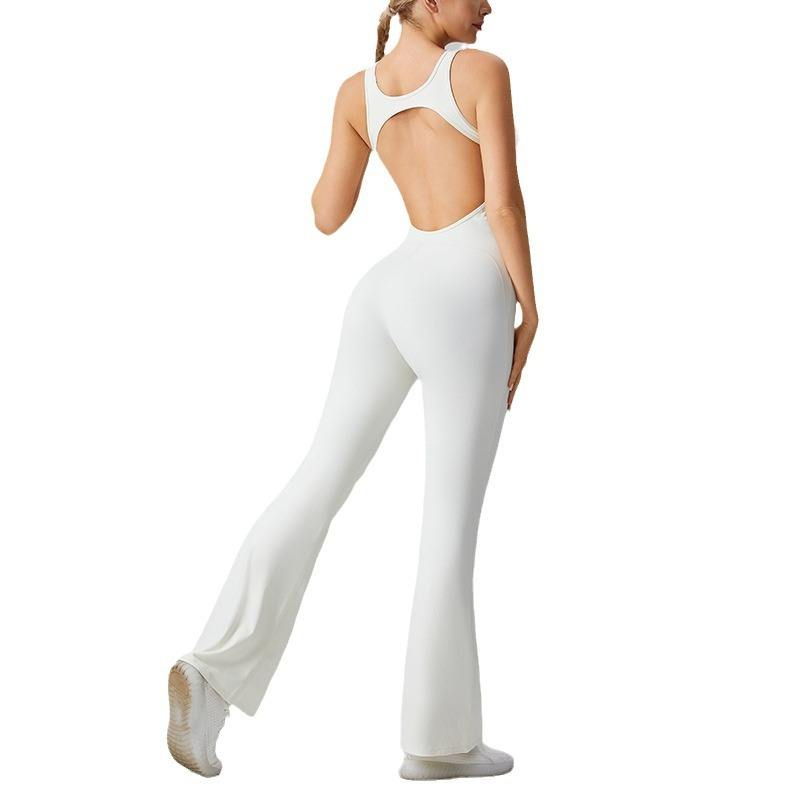 Women's High-Elastic Yoga Bodysuit Integrated Flared Pants Hollow Back Sportswear for Dance Fitness Hip-Lifting Leggings
