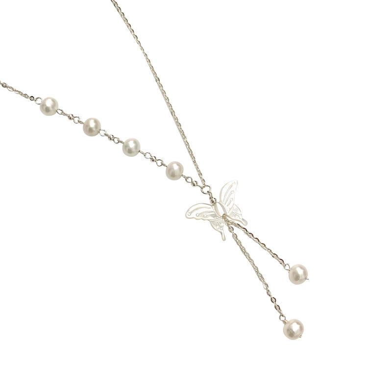 Women's High-End Fashion Pendant Necklace White Butterfly Shell Freshwater Pearl Versatile Design for Commuting