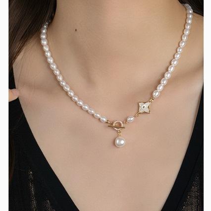 Women's High-End Four Leaf Flower Necklace with Natural Freshwater Pearl and Zircon Light Luxury Collarbone Chain Nuclear Free