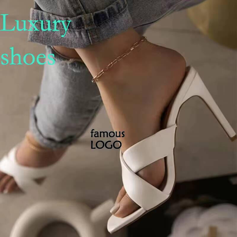 Women's High Heel Sandals Cross Strap Outdoor Square Toe Slippers Open Back Counter Non-Slip Closed Sexy Summer Style