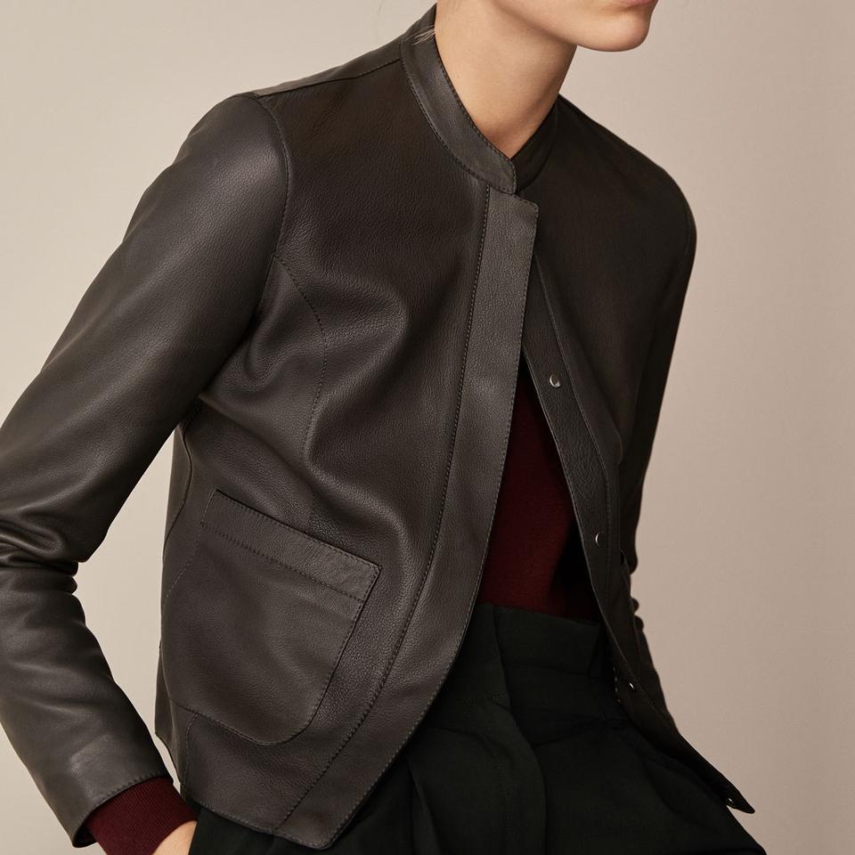 Women's High-Neck Brown Leather Jacket Fully Lined Front Zipper Closure Two Front Pockets Size XL-Plus Black Leather Jackets