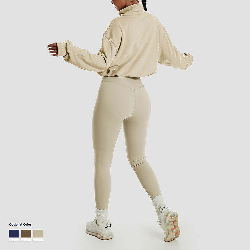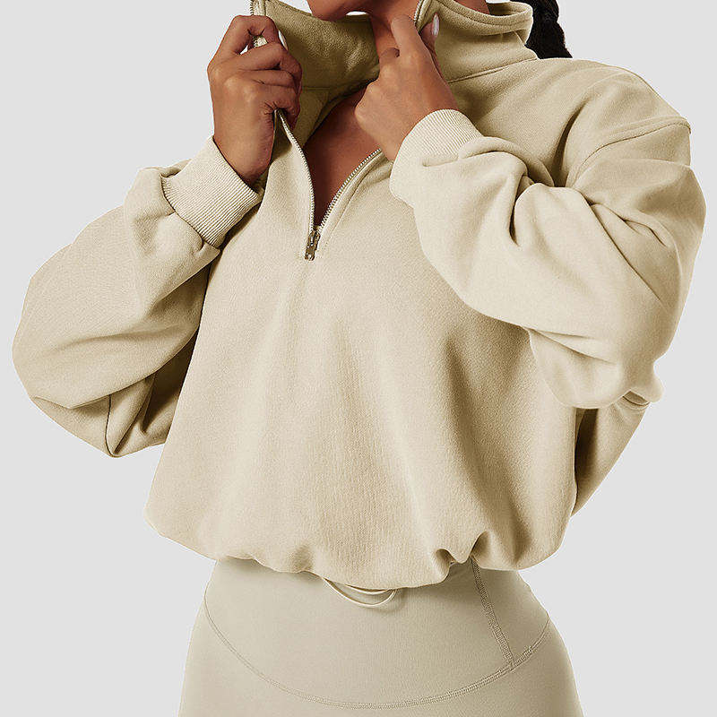 Women's High-Neck Pullover Sports Sweater Breathable Casual Loose Long Sleeve Crop Top Drawstring Zipper Outdoor Running Autumn