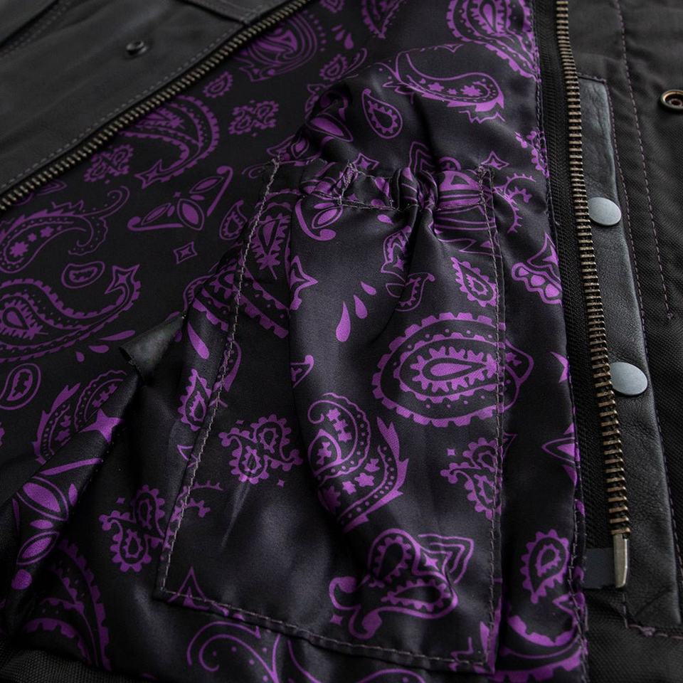 Women's High Quality Cotton Faux Leather Motocross Racer Sleeveless Jacket Solid Black Paisley Leather Vintage Embroidery Zipper