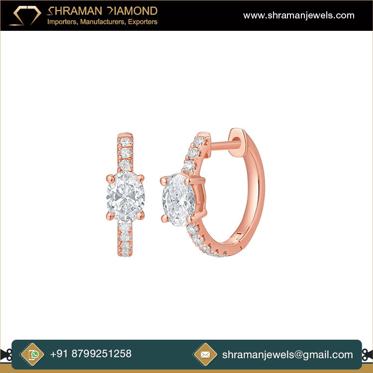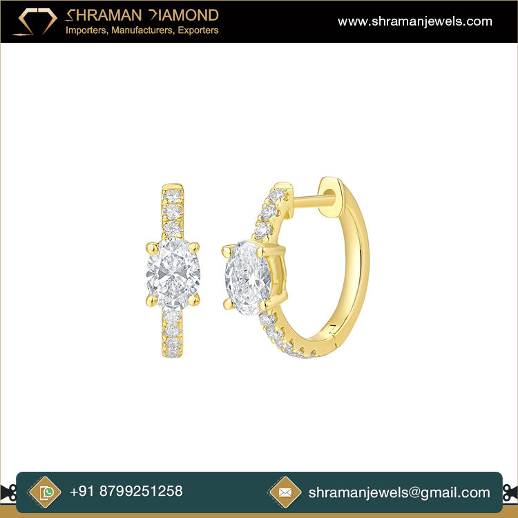 Women's High Quality Modern Design Fashion Jewelry 10K Solid Gold Custom Oval Cut Lab Grown Diamond Stud Hoop Daily wear Earring