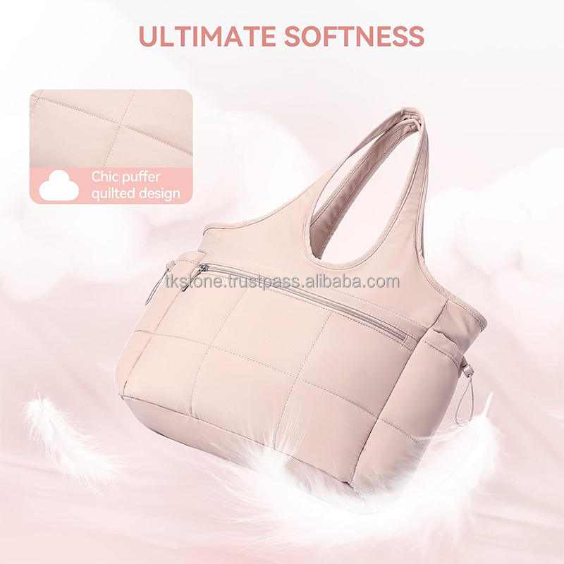 Women's High Quality Soft Nylon Puffy Tote Handbag New Trend Large Capacity Fashion Gym Bag Water Resistant Winter Spring Zipper