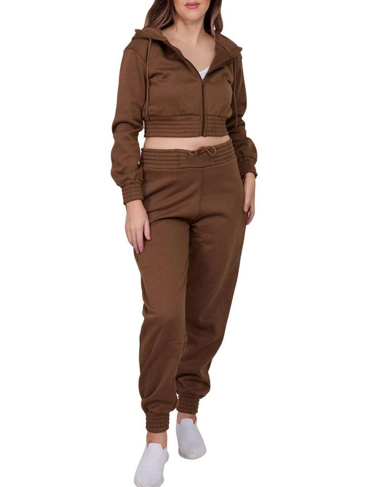 Women's High Quality Two-Piece Set Custom Zipper Crop Top Sweatsuits Wholesale Manufacturer High Quality Tracksuit Winter 2026