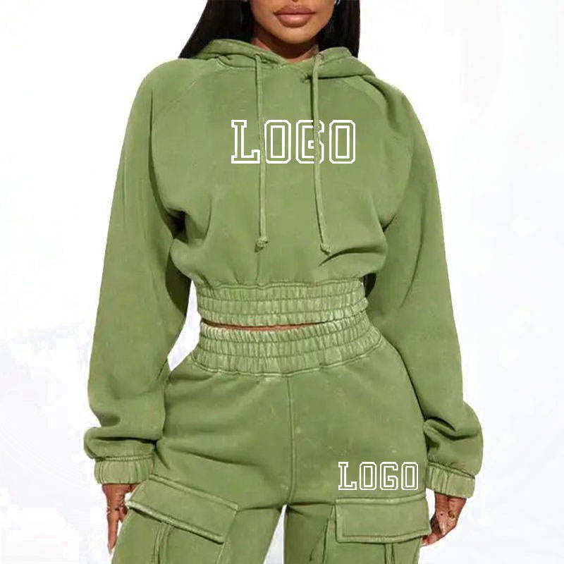 Women's High Quality Winter 2 Piece Jogging Cropped Hoodies Pants Tracksuit Breathable Mesh Sweat Suits Outfits Workout Solid