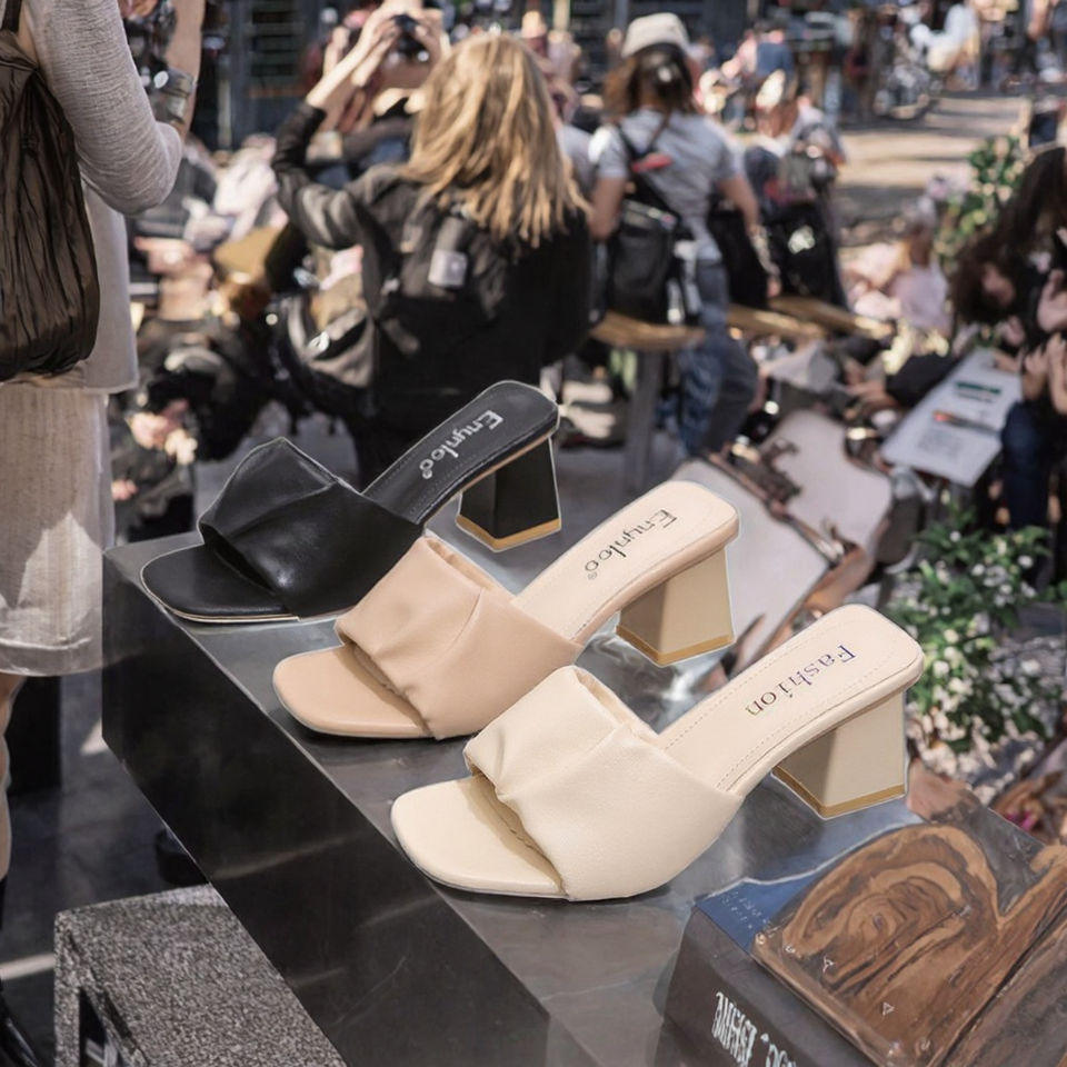 Women's High Top Canvas Outdoor Sandals Size 35-42 Plus Size Super High Thin Heel Slide Slippers Summer Open Back